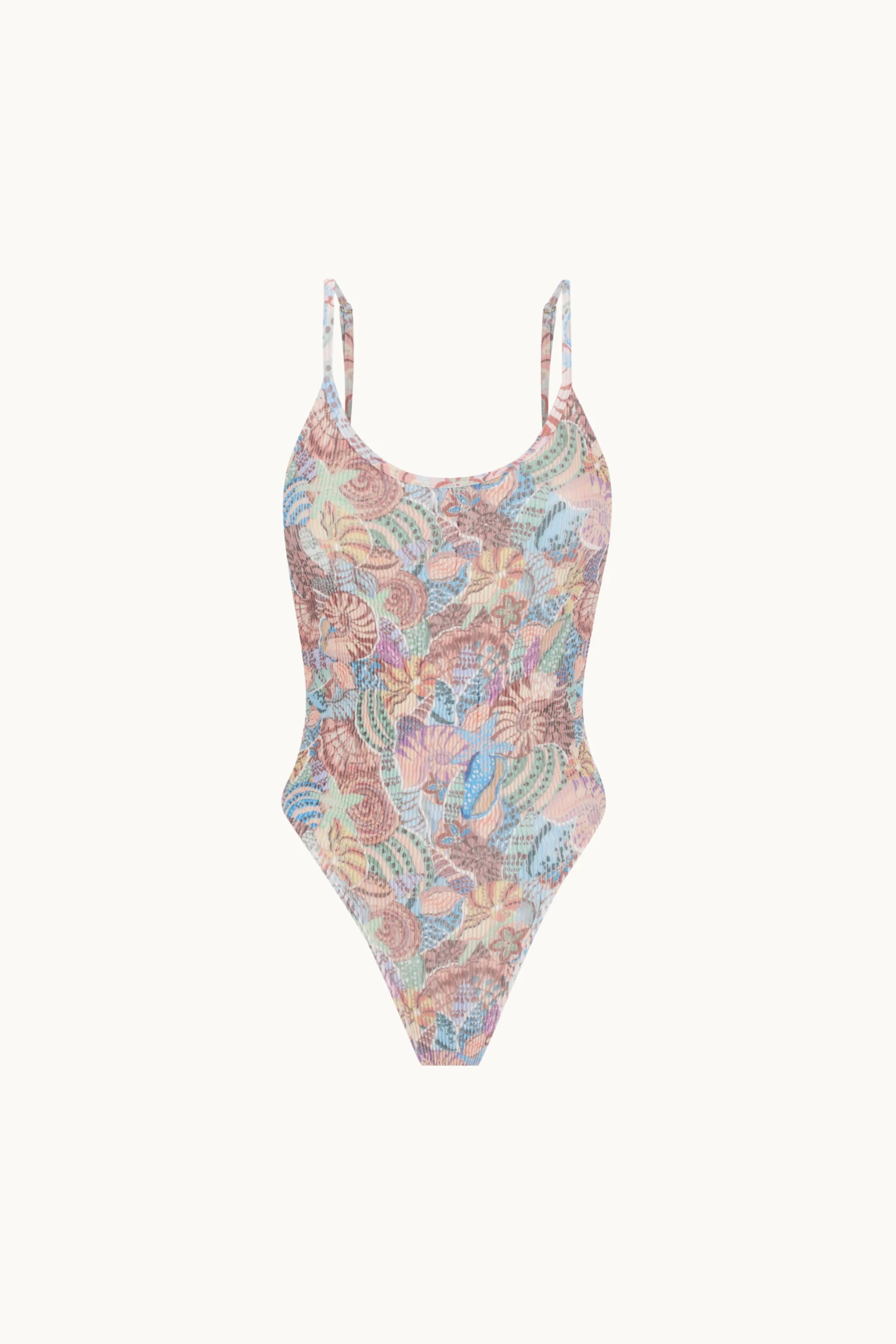 The Wanda Maillot, a timeless full-body suit featuring adjustable shoestring straps and a low scoop back in our stunning Pacifica Shell print. Embrace maximum versatility and cool summer vibes with this playful and effortless maillot. Channel your inner beach babe with ease and style!